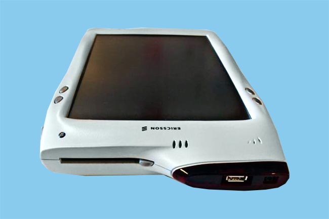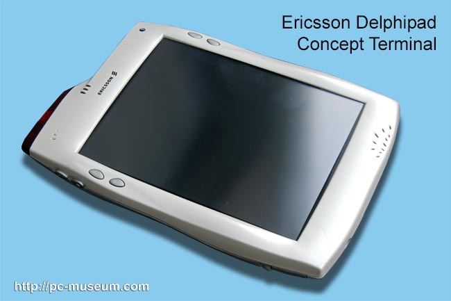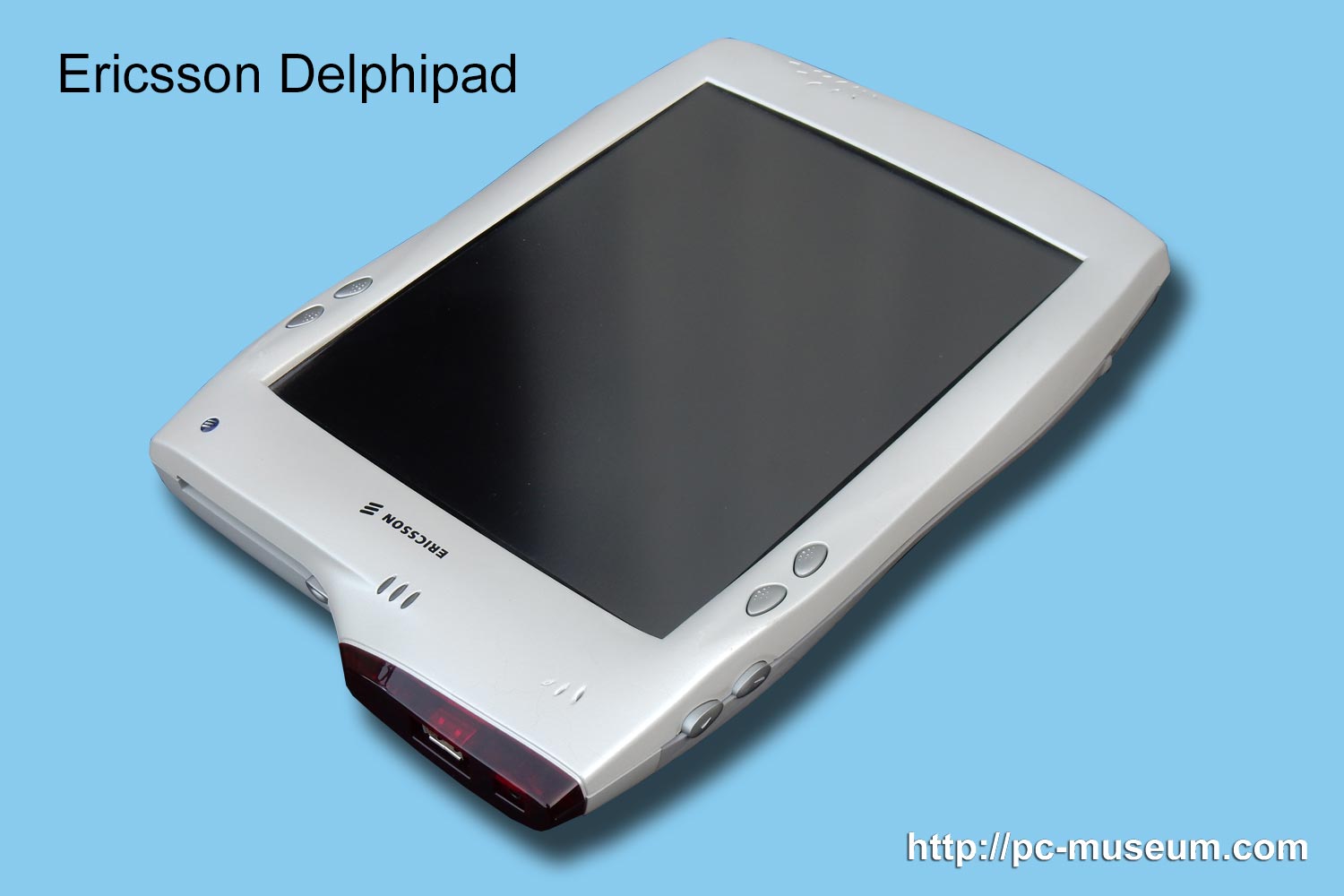 Ericsson Delphipad Concept Terminal (Singapore 2001) In 2001, Ericsson Mobile Communications AB (ECS) announced an experimental product named the DelphiPad, with a weight of 1.3kg, have a measurement of 295x195x35 mm, with a touch-sensitive screen, Netscape Navigator as a web browser, and Linux as its operating system. Basically resembled a modern tablet with a touch screen, which was developed in cooperation with the Center for Wireless Communications (CWC) in Singapore. Kindly donated by Christer Grännsjö